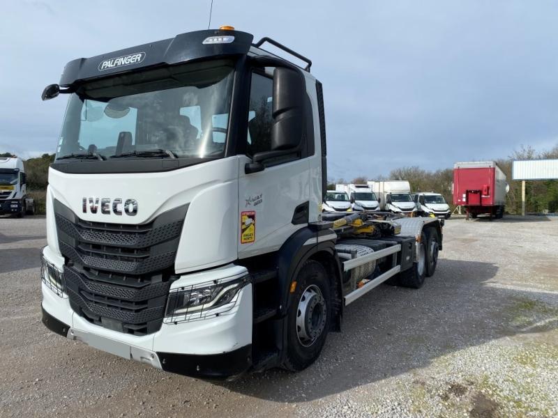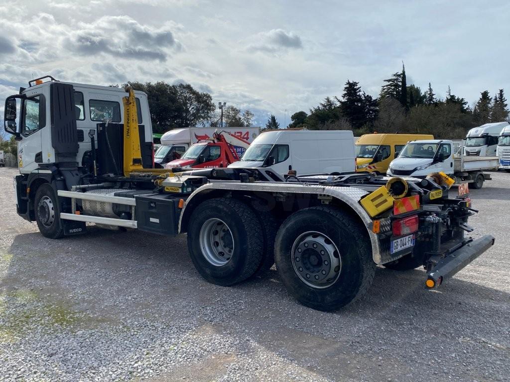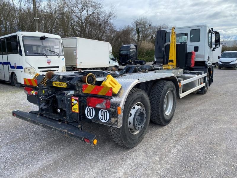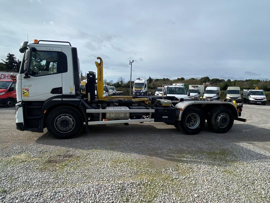 Beau 6×2 avec bras Palfinger à potence coulissante. Tout équipé, intader clim, camera de recul Sous garantie constructeur jusqu’en 08/2026.